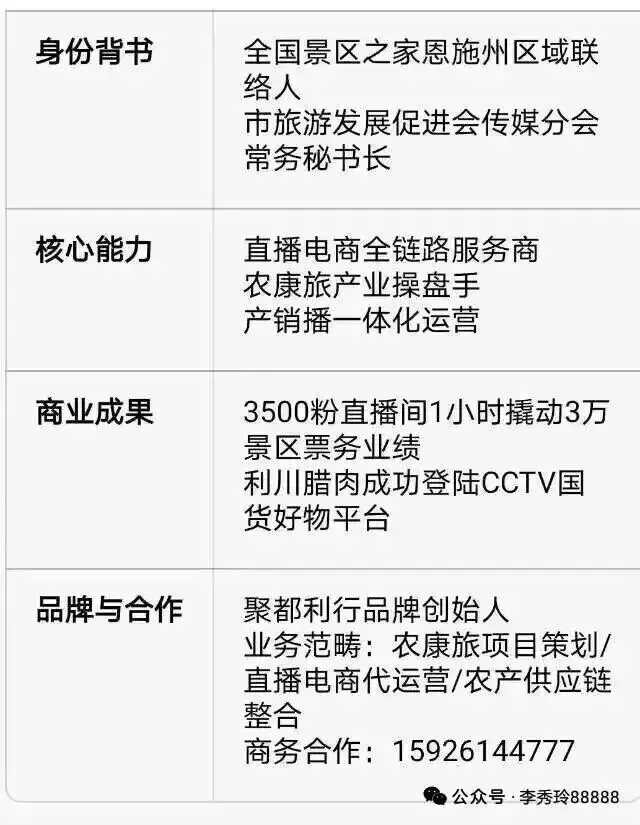 她不仅是利川市旅游促进会传媒分会常务秘书长、利川文旅人才库核心成员,更深度联动人社、农业、文旅、国企等多部门,拥有丰富的政企合作经验和全国渠道资源。