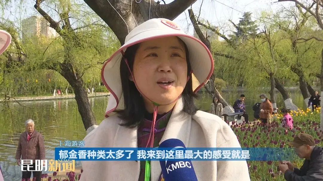 “郁金香种类太多了,我来到这里最大的感受就是,假花比真花贵,我们在酒店的桌子上,包括餐馆里,餐桌上的花都是真花,以前觉得昆明的花多,但没想到花这么多。”