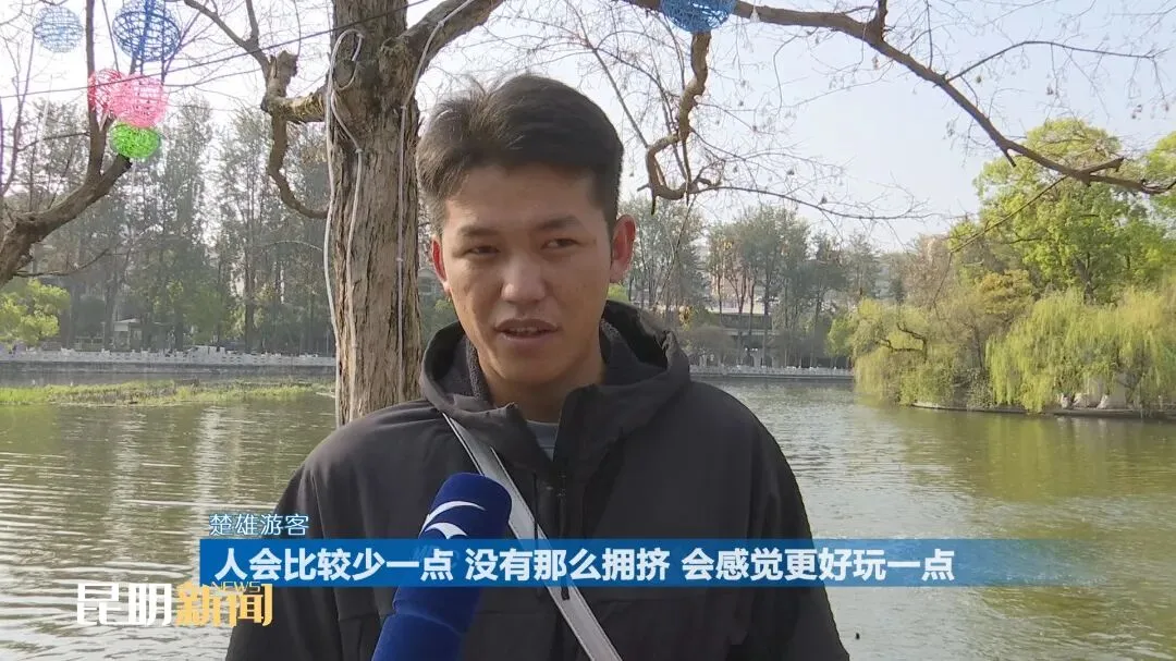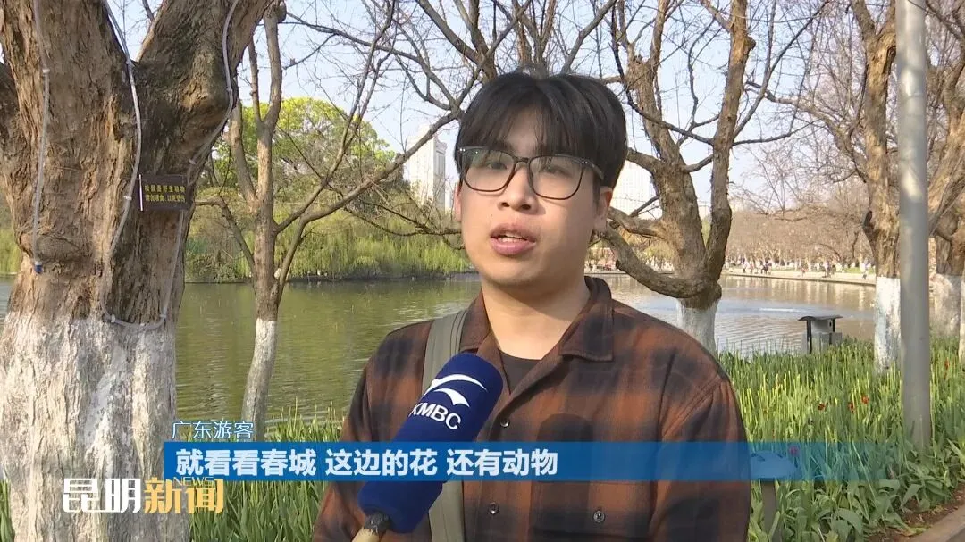“春节过后来就是错峰出行,春天也到了,就看看春城,这边的花,还有动物。”
