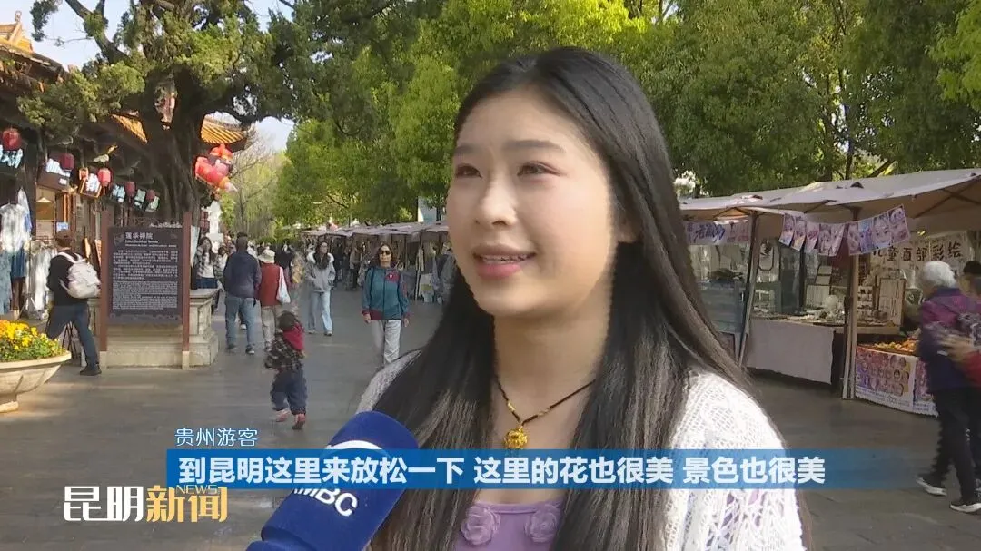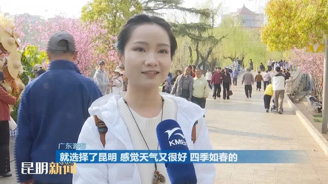 "因为我现在还在假期当中,正好能错峰出行,就选择了昆明,感觉天气又很好,四季如春。"