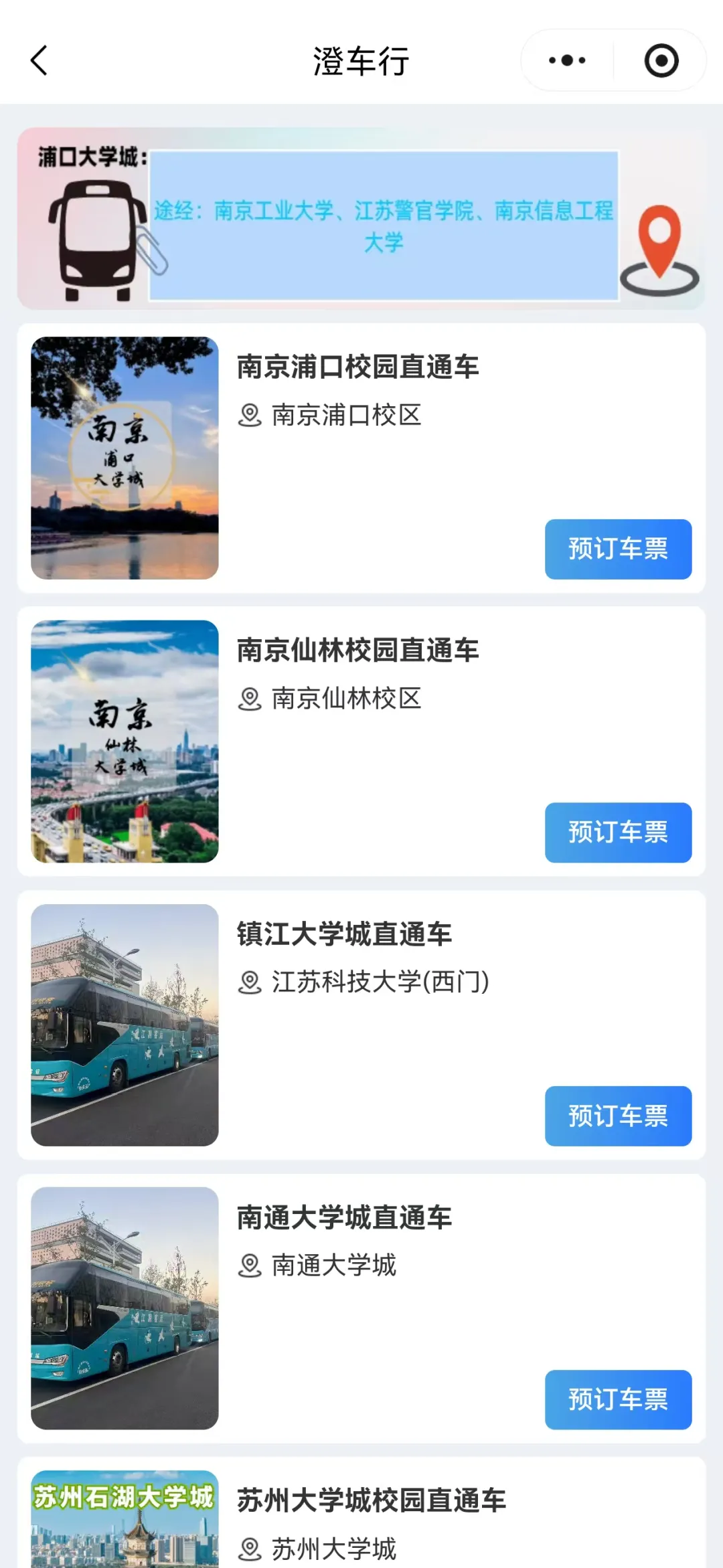 点击“校园直通车”,选择相应校区即可购买校园直通车车票。
