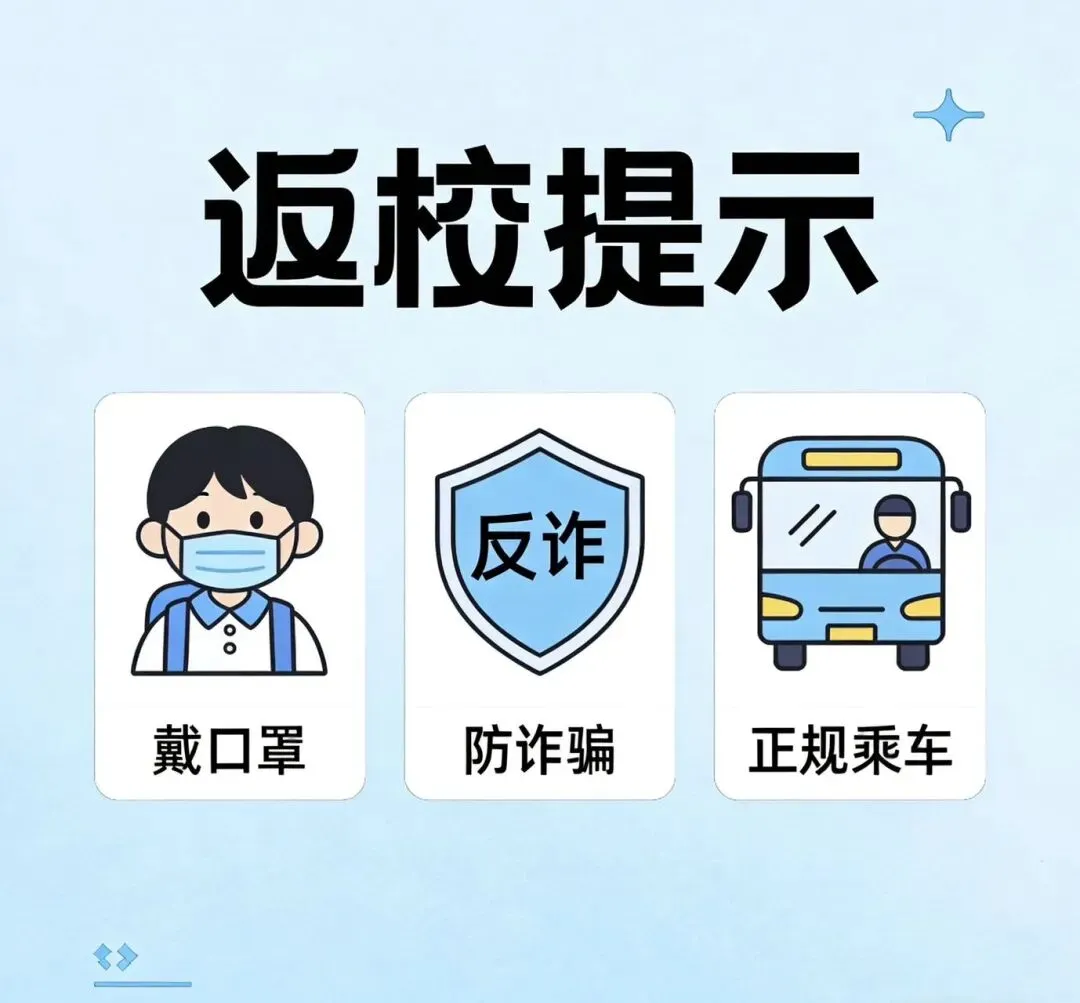 2.合理安排行程,做好出行规划。开学期间是春运返程高峰期,若乘坐飞机、火车、汽车等方式出行,建议同学们在正规渠道提前购买返校车票。出行当天预留充足的时间,避免因堵车等不确定因素影响出行计划。如因特殊情况无法按照规定时间返校,请及时联系辅导员老师请假并告知未返校原因及计划返校时间。