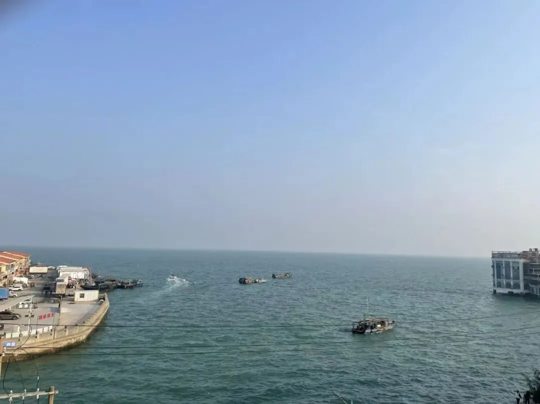 当然,松山湖本身并不靠风景取胜,强在产业吧,聚集了很多中国民营高科技企业。 除夕下午四五点,停车场停满了,都是来骑行的年轻人,很多年轻父母+小孩的骑行组合,还有老人+推车+小孩的组合,让人感觉这天就是一个普通的周末,而不是传统除夕的样子。 二、湛江:旅游区都在卖海景房,餐厅吃饭靠等 广东的海都很蓝很清,不像浙江和上海的海很黄……老城区大片的民宅很旧很破,看起来也不会搞城市更新。不管是民国风情街,还是金沙湾,吃饭的餐厅总是要等,点菜40分钟后还没有上一个菜,真叫人抓狂。 家里当过兵的老人,只对湛江的十里军港感兴趣,看军舰要到本地人爱逛的公园看。