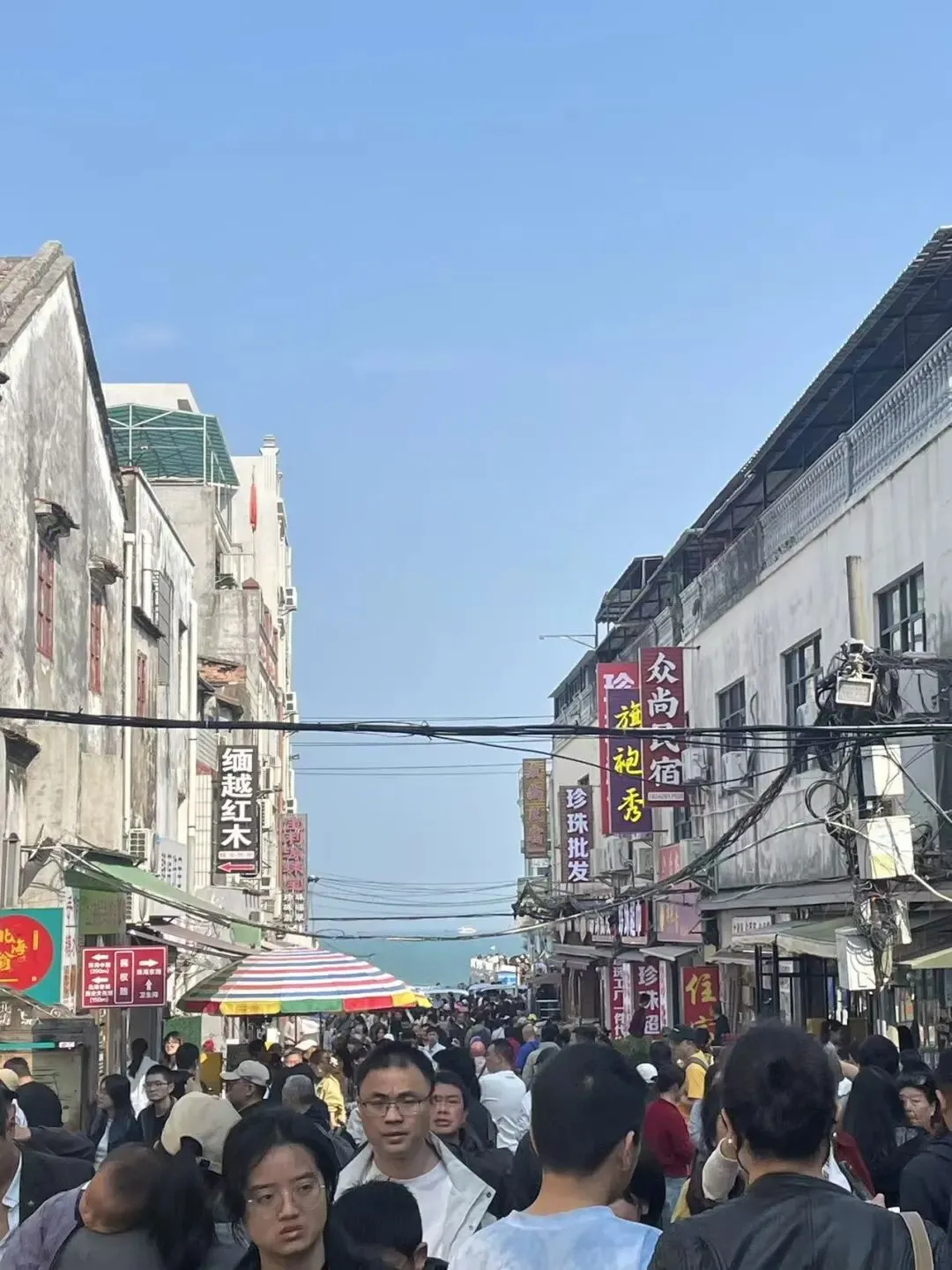 北海没有地铁,共享电瓶车对老人孩子不友好,出行纯靠自驾。在金海岸大道上,我看到了31个省份的车牌,才发现北海辐射的是全国游客,不是区域性旅客。 金海岸大道一路从早堵到晚。沿途有个网红村叫“流下村”,我们并没打算去,但到另外一个景点必须经过它。村民们在村子外围的道路主干道两侧,圈各种空地作为停车场,导致更多拥堵。村子里面,则见缝插针,招揽游客停车,10-20元一次不等。最雷的,是村民设的“一元一次”洗手间,其实江浙沪也有很多网红乡村,但这种情况我还是头一遭见到。