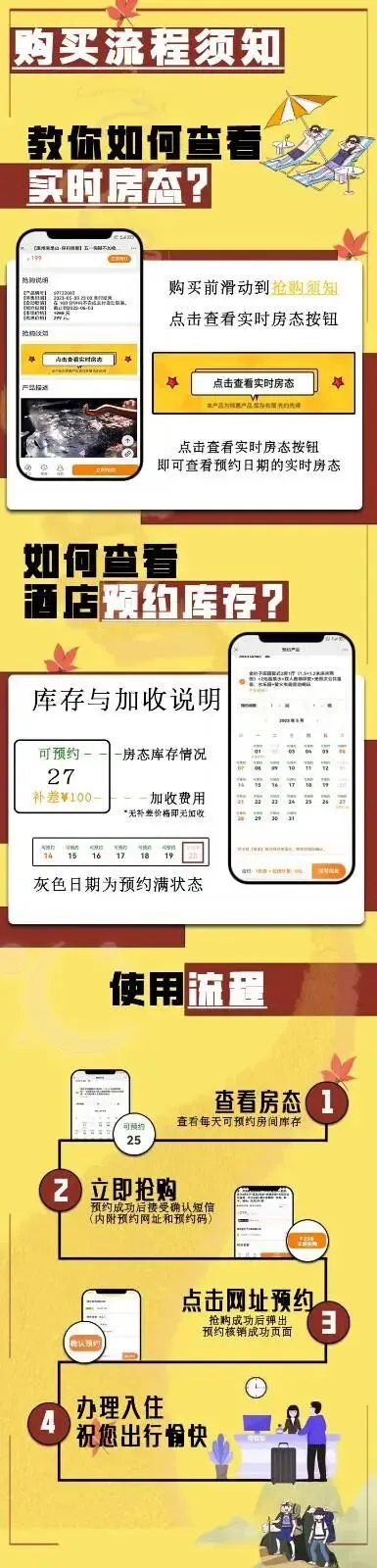 ③ 抢购流程:立即抢购--收到预约短信--通过预约短信预约日期以及补差(以收到的短信为准,收到即预约成功,预约成功不得退改)--办理入住