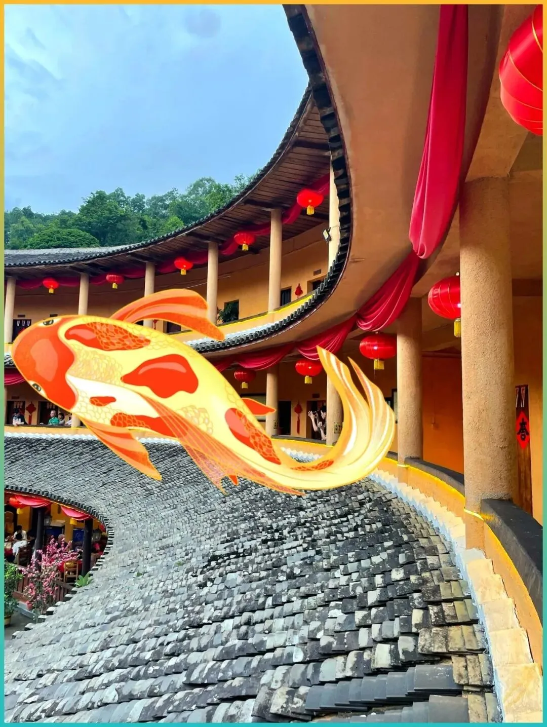 爬到山腰的❶振成楼观景台,从上往下看结构超震撼;