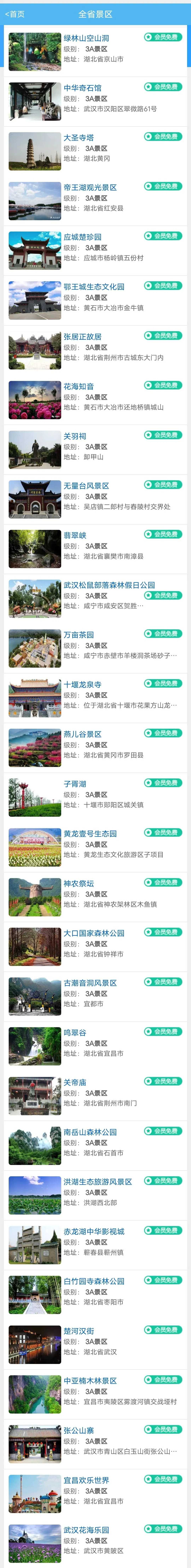 湖北旅游年卡景区目录