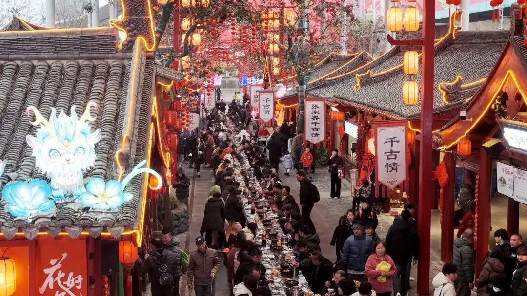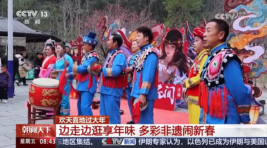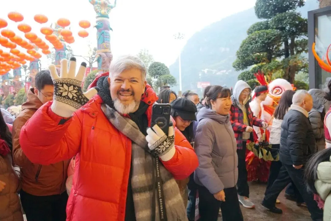 除夕当天,“世遗武陵源・土家过赶年”热闹开锣,500余名中外游客共饮拦门酒、同吃团圆宴,在摆手舞的律动、西兰卡普的斑斓中,沉浸式开启一场兼具民俗味与烟火气的土家新春之旅。