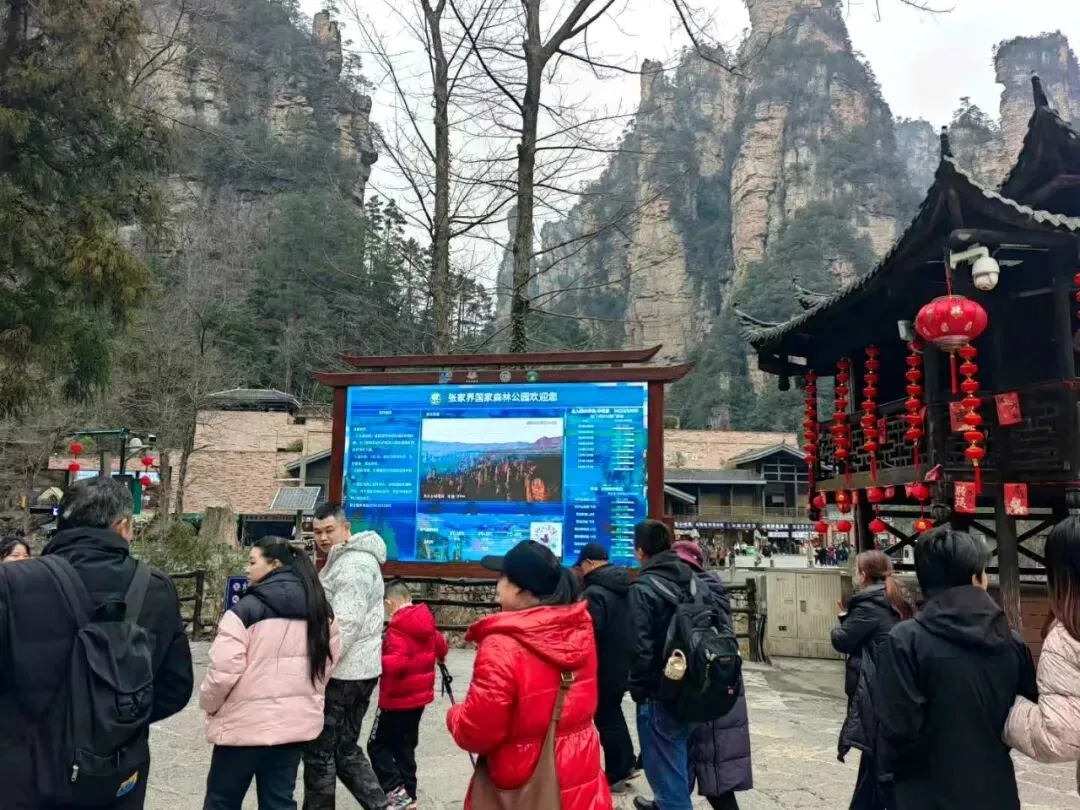 9条无人机巡航航线实时传输人流热力分布图像,“张家界旅游小助手”、全域LED屏实时发布排队时长、景区动态,用“数据多跑路”换“游客少排队”;分时段预约、分区域游览全面推行,智慧停车服务一键定位、便捷可至;市级+区级大数据实时监测全域客流、研判运行趋势,以精细化、智能化管控牢牢守住旅游安全底线。