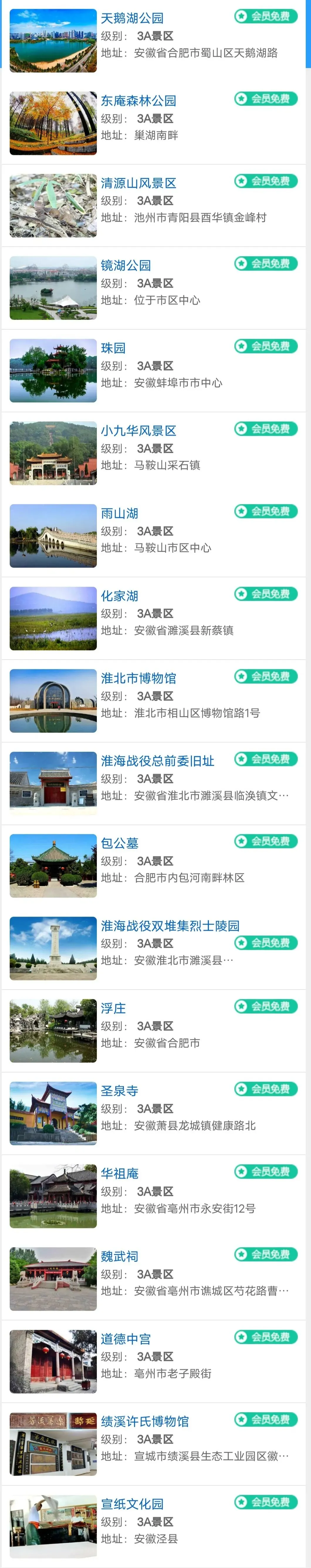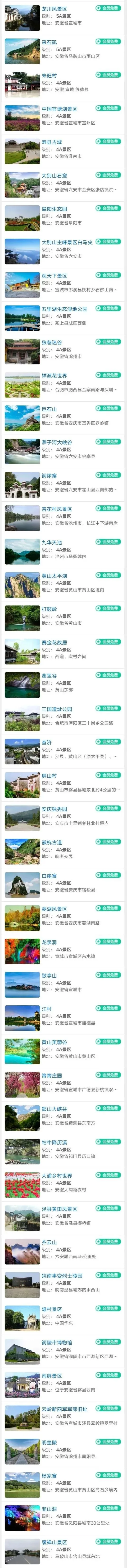 安徽旅游年卡景区目录