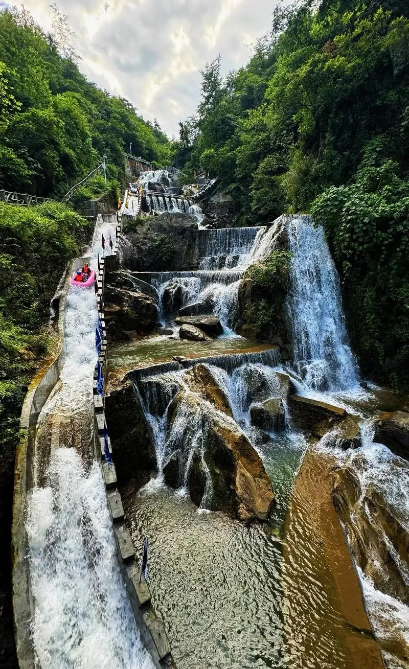 很多人去天意谷是为了避暑,这没错,但真正起作用的不是温度低了几度,是峡谷里那种被包裹起来的感觉,两边都是石壁和树,头顶是天但又不完全看得到,人走在里面自然就静下来了,这种静不是刻意营造的氛围,是地形和水声配合出来的,你想吵都吵不起来。