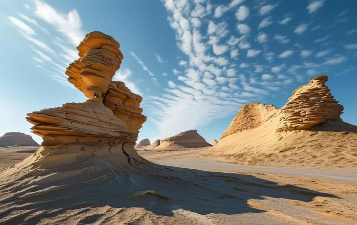雅丹魔鬼城这个地方,导游词里都说是"大自然的鬼斧神工",但这种说法太文艺腔了,说不到点子上,因为你真站在那些土堆前面,会发现这个地方让你重新理解的,是时间这个概念,不是人类历史那种几千年的时间,是地质学意义上那种几百万年、上千万年的时间,那些看起来像城堡、像舰队、像各种奇形怪状东西的土堆,都是风用几十万年一点一点吹出来的,这个事实会让你产生一种很奇怪的感受,就是你突然意识到,人类所有的努力、所有的建筑、所有的文明,在这种时间尺度面前都不算什么,因为风只需要继续吹下去,早晚能把一切都抹平。