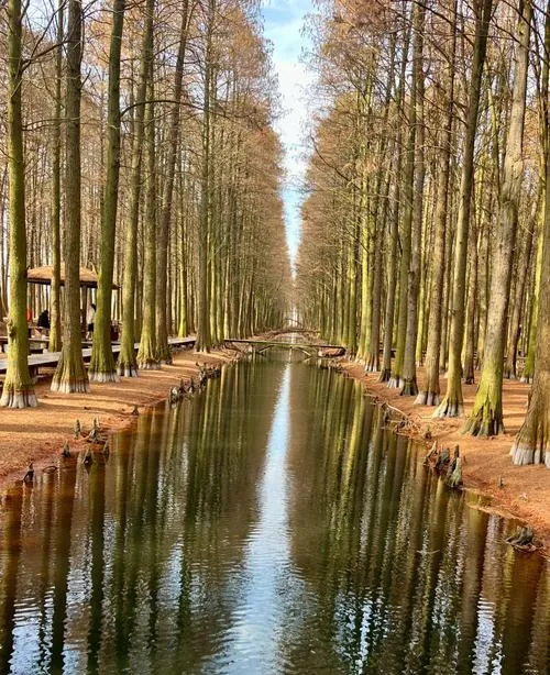 别的地方看到水多了想的是排水,想的是把地弄干了好种田好盖房,兴化人不是这么想的,他们看着这些水看了几百年,最后想明白了一件事,既然这地方注定要跟水打交道,那就别费劲改造它,直接用它。于是就有了水上森林这种操作,把树种在水里,让杉树的根系扎进淤泥,树长大了形成林子,林子净化水质,水滋养树木,这个循环一转起来,那种人和环境之间紧绷的对抗感就没了,剩下的是一种松弛的共生状态。你走在那些栈道上,看着阳光透过树冠打在水面上,那种安静不是刻意营造出来的,是这套系统自己运转出来的。