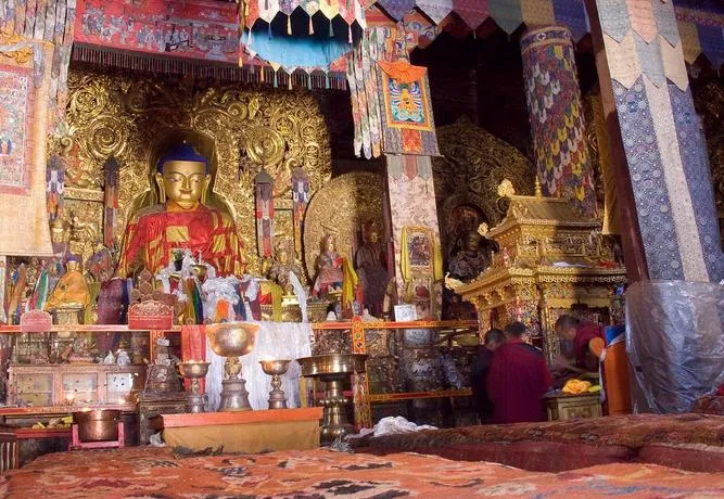 南寺里最值得看的是大殿,殿内的壁画和唐卡密密麻麻,颜色经过几百年还是很鲜艳,那些画里的佛像、护法神、历史人物,不是为了好看,是为了把整个萨迦派的传承体系用视觉的方式固定下来,让后来的人一看就知道,这个教派是怎么来的,谁说了算。