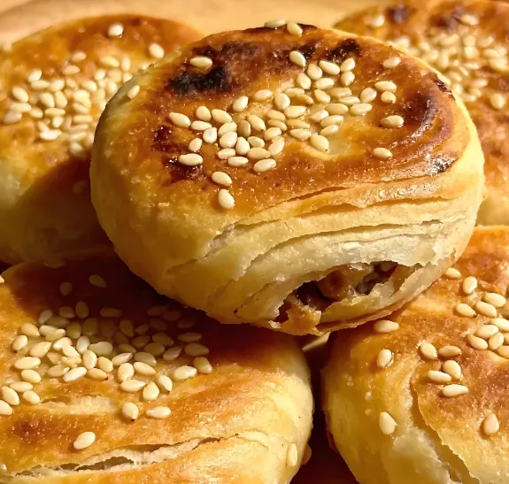 【第一美食:棋子烧饼】来唐山不吃棋子烧饼等于白来!这可是非遗美食,因形状像棋子得名。推荐去唐山宴或者专门的老字号店铺,现烤现卖的最好吃。外皮金黄酥脆,一咬直掉渣,内馅有猪肉、五香等多种口味。我个人最爱肉馅的,15块钱一份,趁热吃香得不行,很多老唐山人都是几盒几盒地买,带走送人也特别有面子。