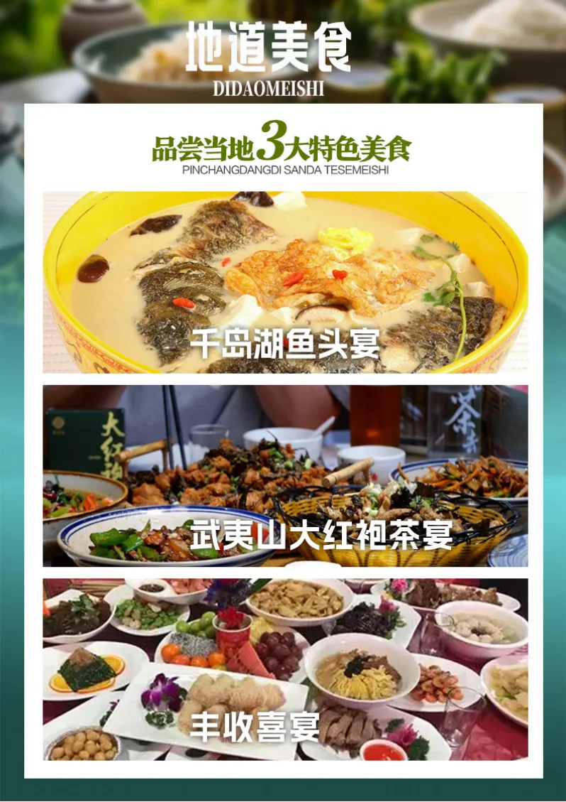 【★乐享美食】:3大餐特色宴《千岛湖鱼头宴》《武夷山大红袍茶宴》《丰收喜宴》品舌尖美食