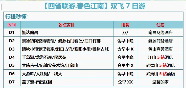 秀水旅游~江西/福建/浙江/安徽四省 双飞7日/双卧9日