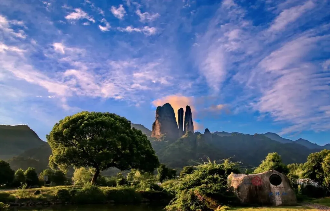 早餐后,游览重点世界自然遗产地、国家AAAAA级景区【江郎山】(观光车15元自理;约2-3小时)著名“驴友”徐霞客曾三次造访江郎山,以雄伟奇特的“三爿石”著称于世。作为浙江首个世界遗产,江郎山拥有中国丹霞第一奇峰、有全国之最的一线天、天然造化的伟人峰、惊险陡峭的郎峰天游,千年古刹开明禅寺、千年学府江郎书院、全国最大的毛泽东手书体“江山如此多娇”摩崖石刻、“烟霞亭”等景点景观一百余处。在山脚、山腰等多角度看呈“川”字形排列的“三爿石”,攀登过程中不断的抬头望这三爿石,每走过几十米,都是另一番模样,可谓一步一景,手机低头族的颈椎病都要治好了呢。美景虽好也要注意脚下,记得在三爿石的最佳摄影点霞客亭留下你的打卡照哦!