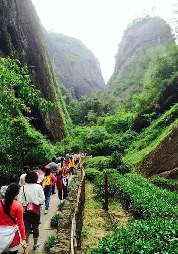 早餐后,游览武夷第一峰【天游峰景区】(武夷山景区环保车套餐内含),海拔408m,相对高度215m。它是一条由北向南延伸的岩脊,东接仙游岩,西连仙掌峰,削崖耸起,壁立万仞,高耸群峰之上。峰上有一涧沿崖壁流下峰底,形成高差约120m泉。峰上名木古树众多,常绿阔叶林郁郁葱葱。明代著名地理学家徐霞客赞道:"不临溪而能尽九溪之胜,此峰固应第一也。沿途可欣赏武夷精舍遗址、云窝、茶洞、隐屏峰、接笋峰、水月亭、铁象岩、小一线天、晒布岩、茶洞、仙浴潭,登上山顶,三十六峰、九十九岩尽收眼底,一饱“曲曲山回转、峰峰水抱流”的秀美景色每当雨后乍晴,晨曦初露之时,白茫茫的烟云,弥山漫谷,风吹云荡,起伏不定,犹如大海的波涛,汹涌澎湃。登峰巅,望云海,变幻莫测,宛如置身于蓬莱仙境,遨游于天宫琼阁,故名天游,为武夷第一险峰。乘车前往游览【大红袍景区】(游览时间约 2 小时),母树大红袍,清代即已名扬天下的大红袍母树仅 6 株,生长于武夷山景区天心岩九龙窠,是武夷岩茶高贵品质的象征,具有丰厚的文化内涵。该处山壁有"大红袍"三个朱红大字。大红袍枝叶密集,叶梢向上斜着伸展开去,叶子是宽椭圆形的,尖端向下垂,边缘则往里翻卷,叶子颜色深绿有光泽,若是新芽则带紫红色。每年早春茶树发芽的时候,从远处望去,整棵树艳红似火,仿佛披着红色的袍子。赠送·专属定制【品茗山水·武夷茶叙体验】,特邀专业茶艺师为您准备一场雅致的专场专属茶会体验,在优美的茶境中,坐下来,静静品饮一杯好茶。在茶香氤氲中,感受茶的芬芳,茶的韵味,与资深茶艺师进行深度茶文化交流,亲近自然,感知雅致生活的一席温暖所在。全国最窄的【一线天】又称一字天,位于武夷山群峰南端之二曲溪南面的一个幽邃的峡谷里。该处有一座巨岩,宛若城廓,名甫灵岩。岩倾斜而出,覆盖三个毗邻的山洞,其顶有裂隙100余丈,宽不及1米。探身洞中,仰观崖顶裂隙,可见天光一线奇景,此即“一线天”。三洞名伏羲、灵岩、风洞,前后通连,由一线天兜进的风,转从风洞而出,迅疾不停,到此顿觉凉爽。灵岩洞终年滴水,汇成一壑清泉,叫圣水。洞南有一座巍岩,名楼阁,传说中谓之神仙楼阁,岩壁题刻颇多。