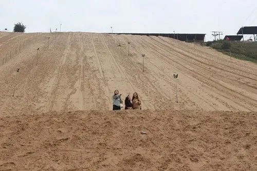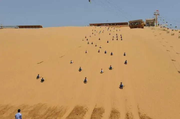 3.国内落差最大的人工滑沙场,滑沙场滑沙道,其落差110米、坡度35度,滑道长160米。