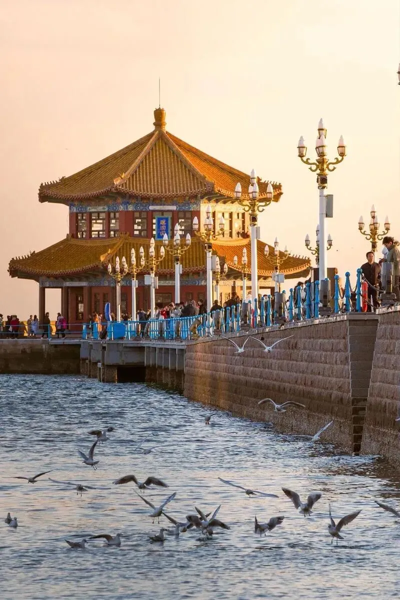 2.栈桥:栈桥及回澜阁,即青岛栈桥,俗称前海栈桥、南海栈桥、大码头,青岛海滨风景区的著名景点之一,位于山东省青岛市市南区太平路12号,地处青岛湾北侧,与小青岛隔水相望,始建于清光绪十七年(1891年),素有“长虹远引”之誉,是青岛市近代第一座人工码头、最具代表性和知名度的城市地标之一。
