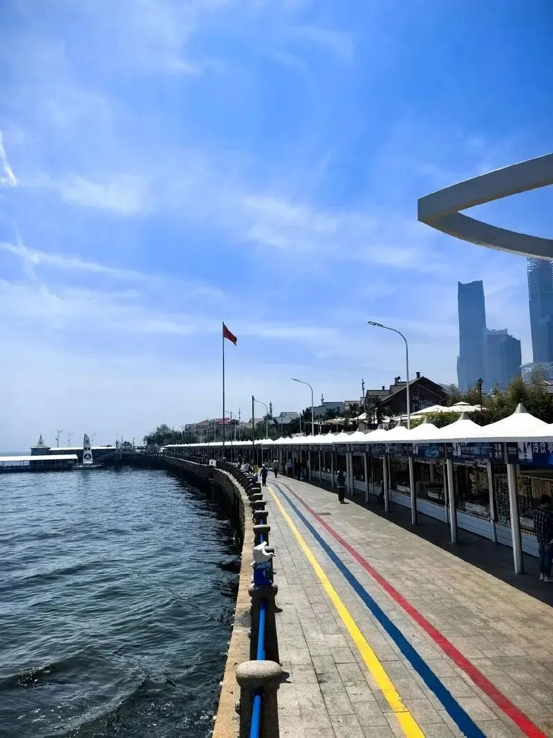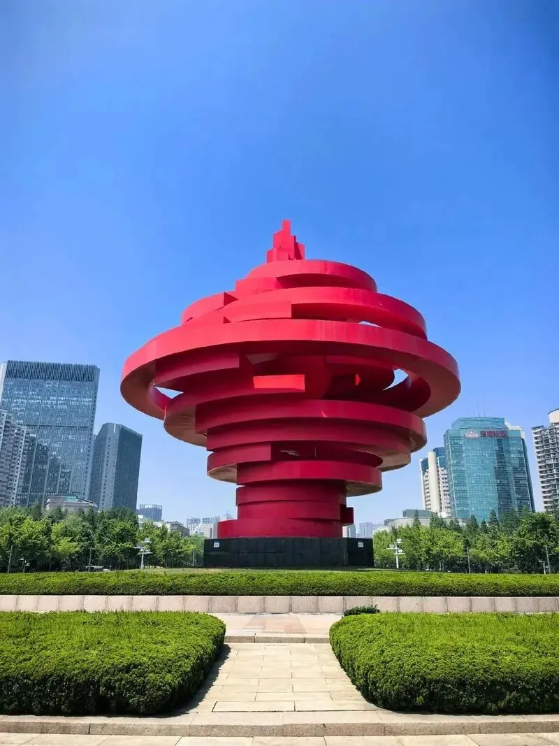 3.五四广场:五四广场(May Fourth Square),位于山东省青岛市市南区东海西路,与青岛市人民政府办公大楼相对,南临浮山湾,始建于1996年,是一处集草坪、喷泉、雕塑于一体的现代化风格广场,为青岛市地标建筑之一。五四广场因五四运动而得名,以东海路为界分为南北两区:北区以绿荫大道间的草坪为主,中央建有喷泉;南区由露天舞台、点阵喷泉、观海迎月台和雕塑“五月的风“等组成,总占地面积达10万平方米;是弘扬五四爱国精神,激励人们奋发图强的重要红色文化教育基地。