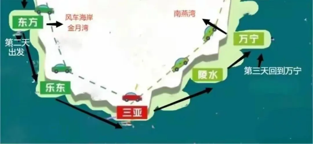 三天,近千公里路程,我们沿着海南环岛旅游公路,从东到北,从北到西,再从西回到南。