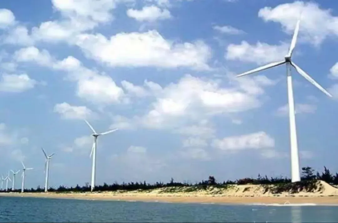 风车在海风里缓缓转动,蓝天、碧海、风车、沙滩,构成一幅治愈系电影画面,温柔又梦幻。
