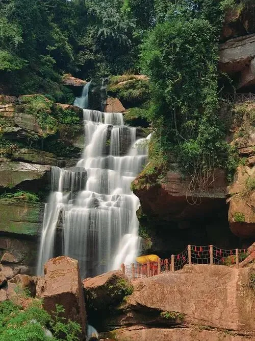 成都天台山丨旅游攻略丨景点介绍点击上方卡片关注👆 天台山景区隶属于邛崃山脉,距离成都市区仅110公里,是四川大熊猫栖息地世界自然遗产、国家森林公园。这里森林覆盖率近95%,负氧离子含量极高,气候温和,年均气温16℃。景区以“山奇、石怪、水美、林幽”著称,独特的箱状向斜山地地貌,造就了从海拔800米到1812米的三级台地,形成了“山有多高,水有多高”的壮丽景观。