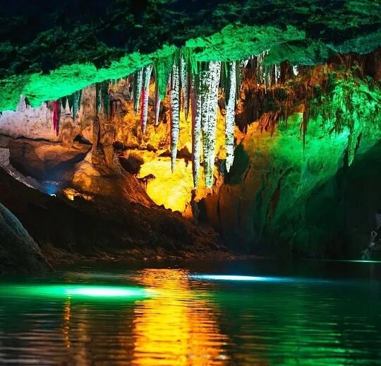 ❹ 本溪水洞(辽宁) “划船5.8公里地下魔界!钟乳石在灯光下像水晶宫殿,夏天进洞瞬间降温10°C” ▫️ 💰门票约150元 | 全年开放