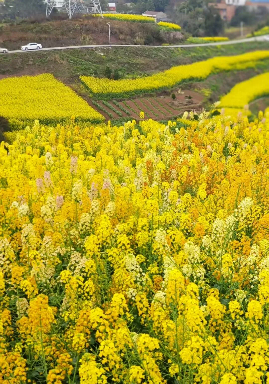 这里五彩油菜花一眼望不到头