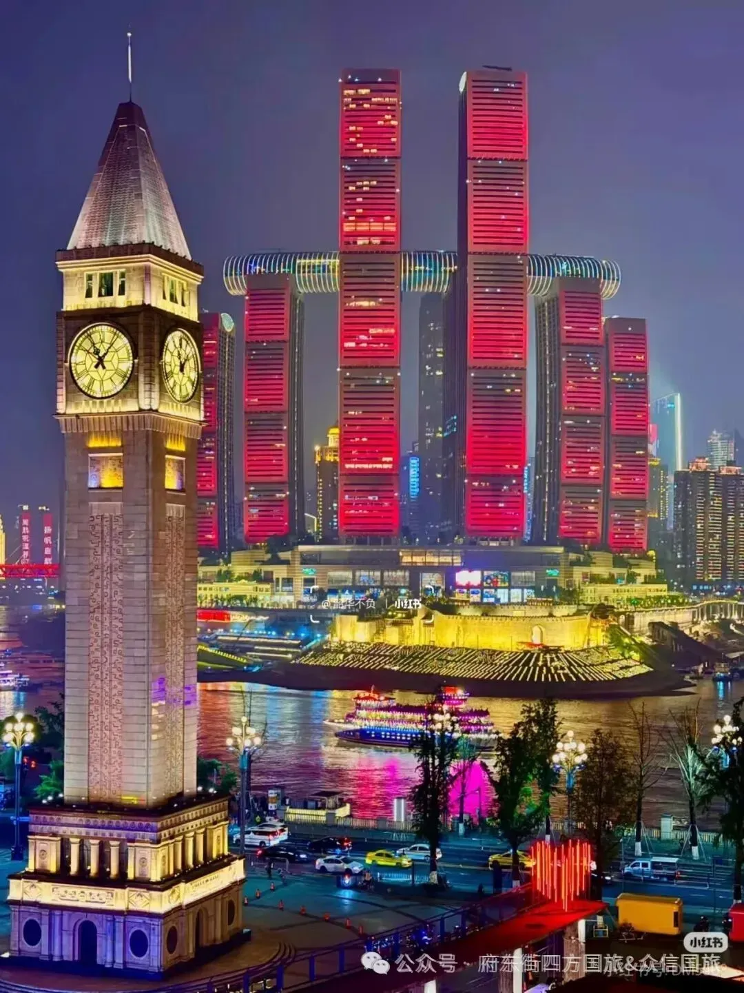 【李子坝轻轨穿楼】(游览时间约 20 分钟)重庆的轻轨路线用“依山傍水穿城而过”来形容绝不为过,跨桥过江的、山间行驶的、穿楼而过的 ,皆是风景。其中,轻轨二号线李子坝站 ,更是因为“穿楼而过”成为外地网友争相追捧的网红地。 (观景台观看)