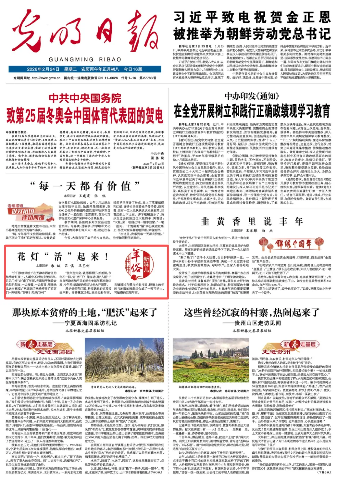 2月24日,光明日报头版刊发《【年俗新味儿】花灯“活”起来!》。“往年逛灯会,就是看看灯、拍拍照,今年不一样,灯‘活’了!能互动、能‘入画’!”来自天津市和平区的杨先生每年都来逛灯展,今年科技赋能的花灯让他大开眼界。