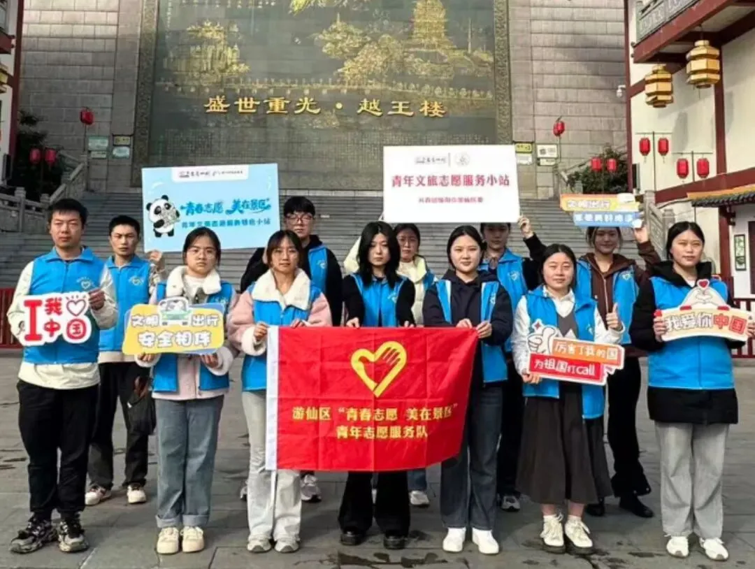 团游仙区委组织20名返乡大学生志愿者在越王楼景区开展“青春志愿・美在景区”志愿服务活动。构建集扫码购票指导、现场秩序维护、游览路线咨询、特色打卡指引、应急帮扶救助于一体的综合性便民服务矩阵,累计服务游客近万人次。