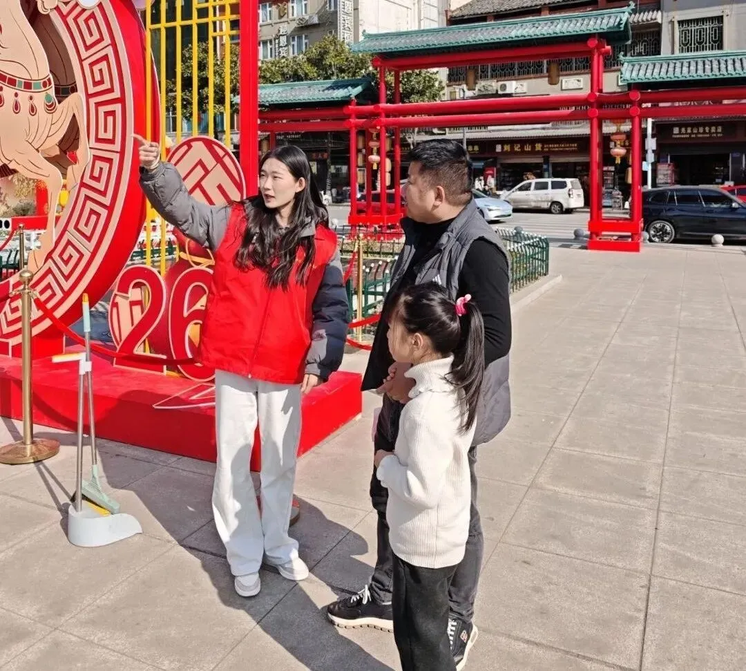 团盐亭县委联合嫘祖故里景区开展 “嫘祖赐福・骏马迎春” 盐亭第一届新春嫘祖文化艺术节志愿服务活动,为游客提供路线指引、购票咨询等服务,针对老年游客、残障人士等特殊群体,主动靠前、贴心帮扶,用服务化解出行难题。