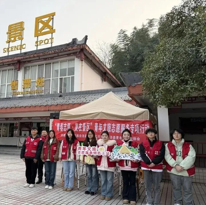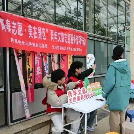 团北川羌族自治县委组织24名青年志愿者开展“青春志愿·美在景区”志愿服务。志愿者们在维斯特农业休闲旅游区、寻龙山景区、北川羌城旅游区为游客提供路线指引、景点介绍等服务,服务游客近万人次。