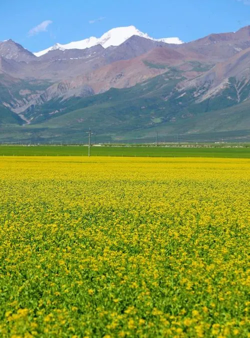 岗什卡雪峰是祁连山的主峰之一,海拔五千多米,山顶常年积雪,很多人去门源看油菜花的时候,远远地能看到它,白色的山顶在天边,跟黄色的花海形成对比,这个画面会让你明白什么叫反差美,因为一边是最热烈的黄,一边是最冷静的白,两个极端放在一起,反而很和谐。