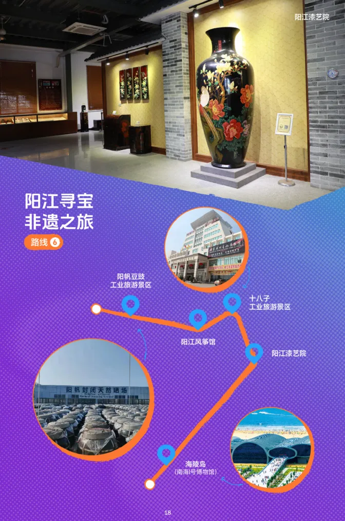 阳帆豆豉工业旅游景区—阳江风筝馆—十八子工业旅游景区—阳江漆艺院—海陵岛(南海I号博物馆)