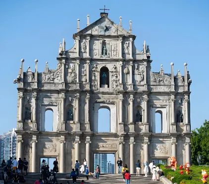 大三巴牌坊:步行3分钟可达,澳门第一地标,世界文化遗产,必拍机位:牌坊正台阶、右侧优衣库二楼、恋爱巷尽头,30分钟打卡