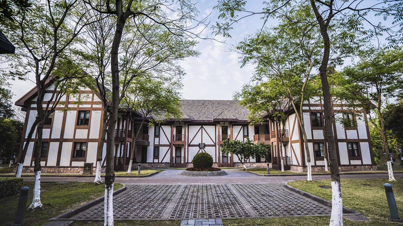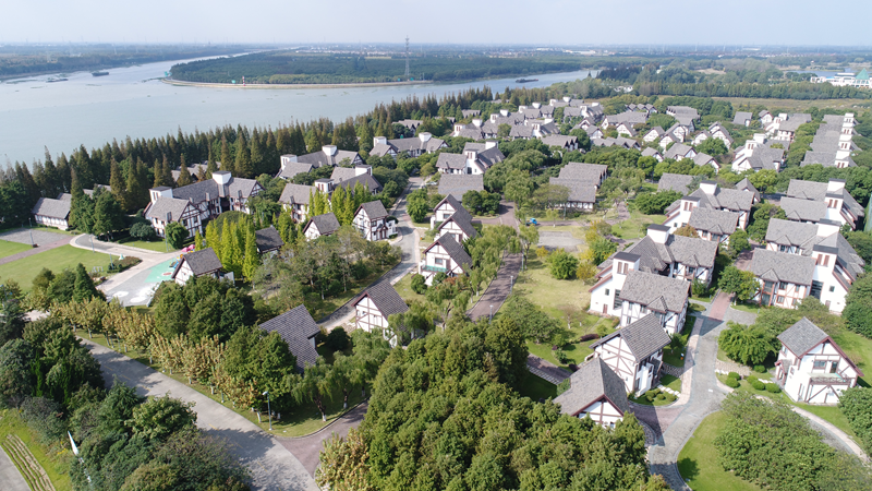 这是上海一座天然岛屿度假酒店,欧式别墅的外观耸立在景观绿地中,既有养眼的自然风光,又有舒适、私密的入住空间。