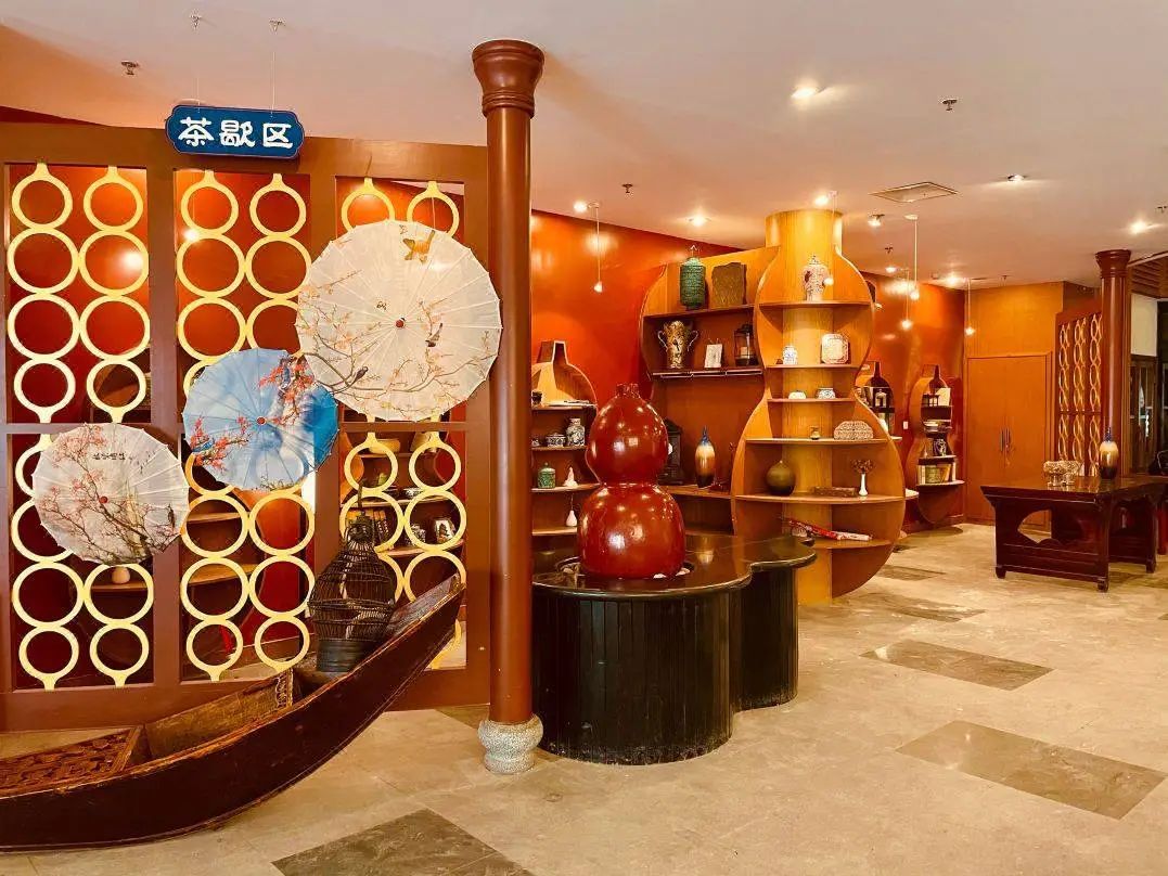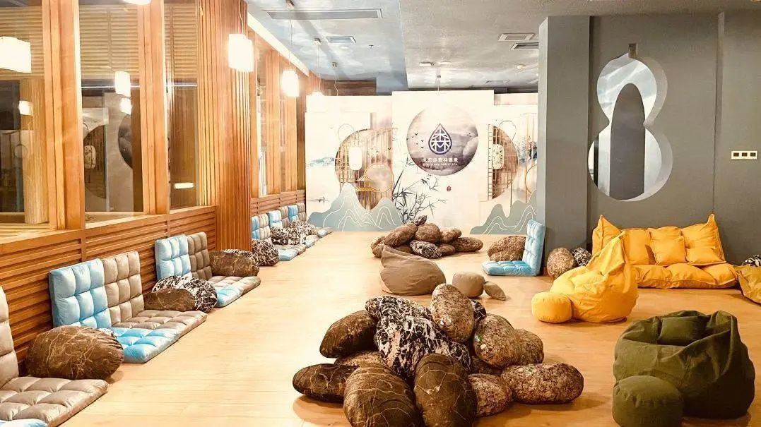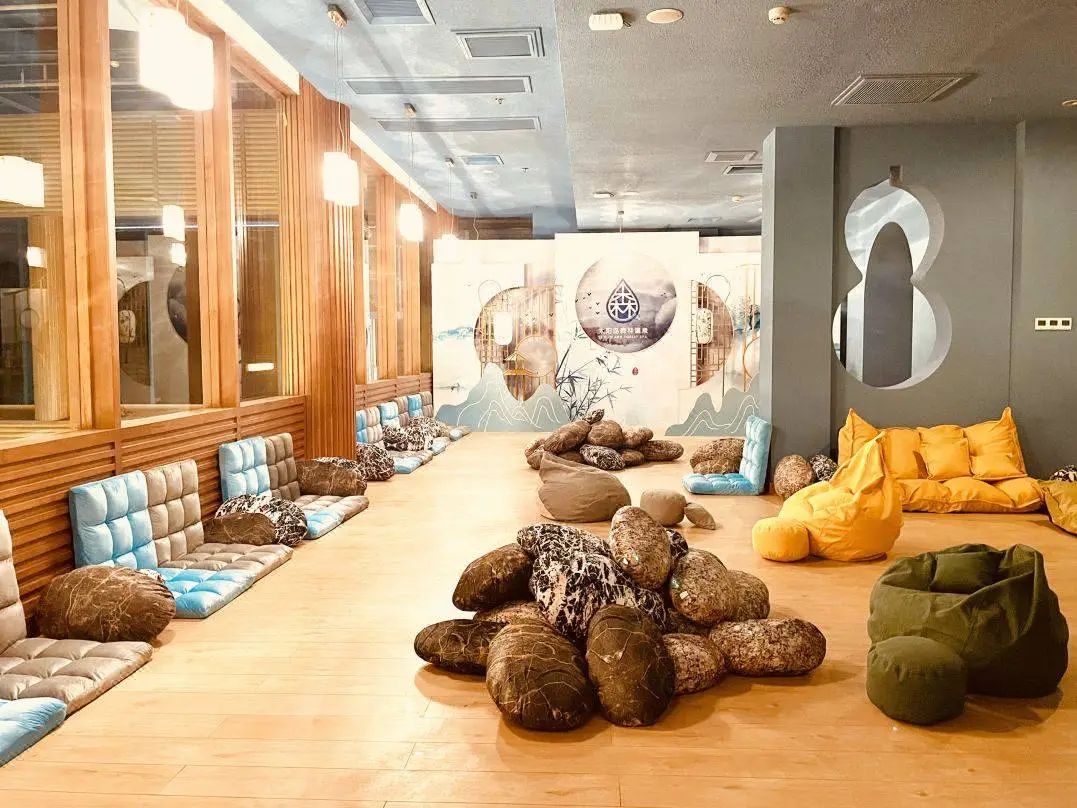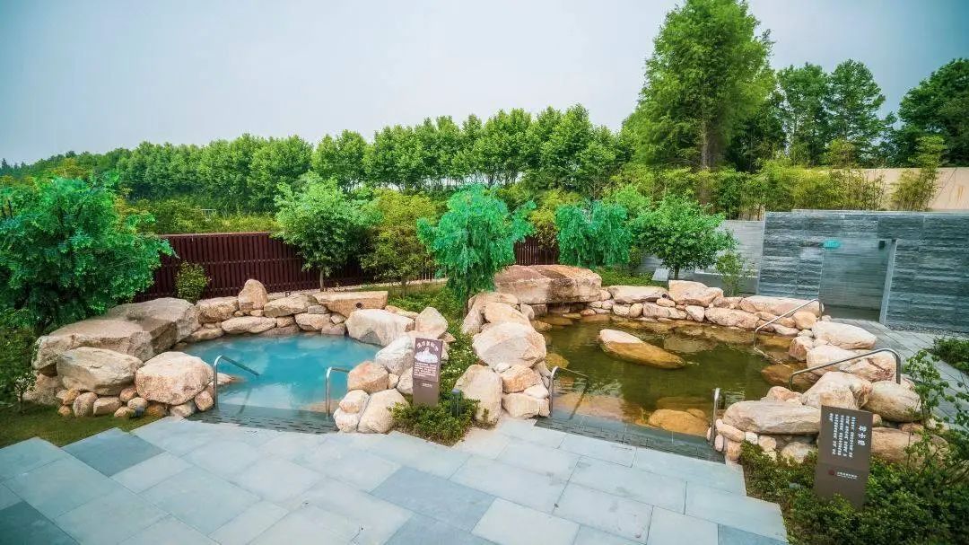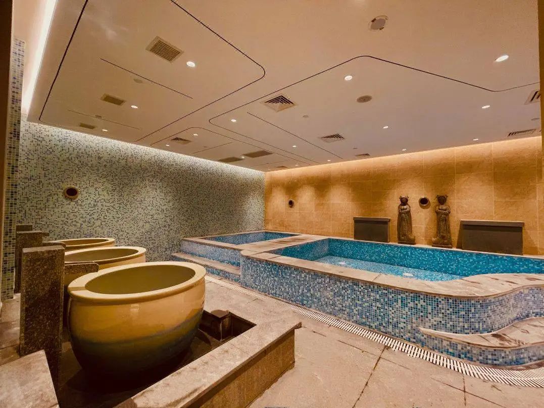 整个场馆采用汉唐建筑风格,古色古香韵味十足,这里不仅有与大自然交融的露天温泉、五大特色能量理疗房,还有亲子乐园、餐饮空间,甚至提供汉服换装,光是在这里就能玩得不亦乐乎。
