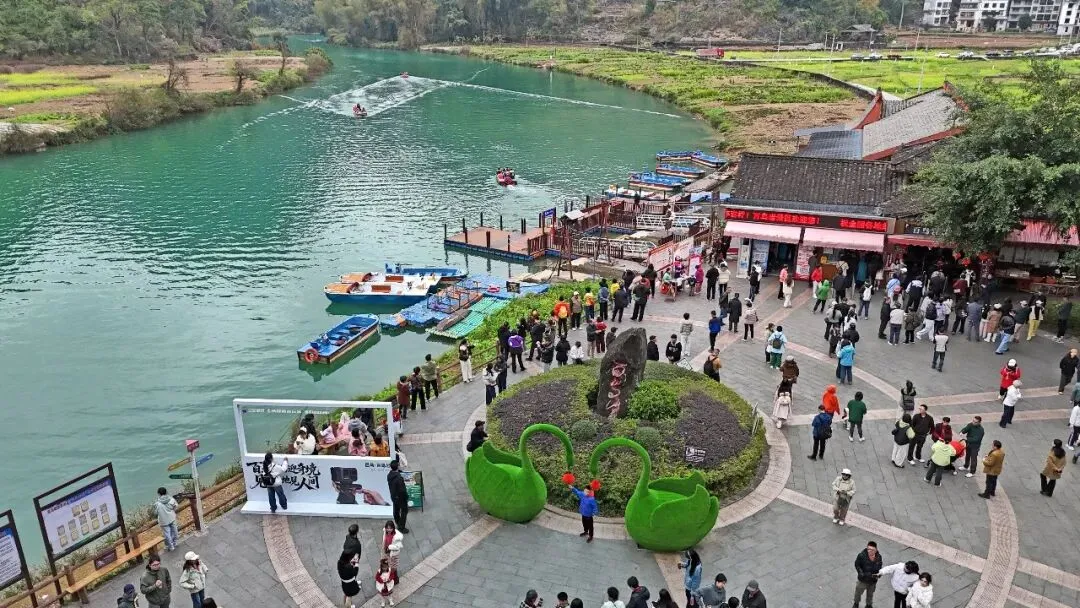 大化瑶族自治县达吽小镇以篝火晚会、美食集市、光影秀点亮夜游,成为热门打卡点,瑶族同胞与游客共跳铜鼓舞、同唱山歌,让游客沉浸式感受瑶乡风情。巴马瑶族自治县康养旅游持续出圈,百魔洞、百鸟岩、水晶宫、长寿岛四大核心景区登上《人民日报》头版;地磁温泉中心吸引众多游客慕名体验“泡汤迎新”,广旅·巴马赐福湖君澜温泉度假酒店连续6天满房;长寿博物馆研学游备受青睐,孩子们在探寻长寿文化中欢度春节;百鸟岩新增VIP游船、特色打卡点,“巴小马”人偶互动、短视频赢福利、非遗补粮添寿等活动让游客惊喜连连。这些新业态、新场景不仅丰富了游客体验,也让“来寿乡过大年”成为新年俗。