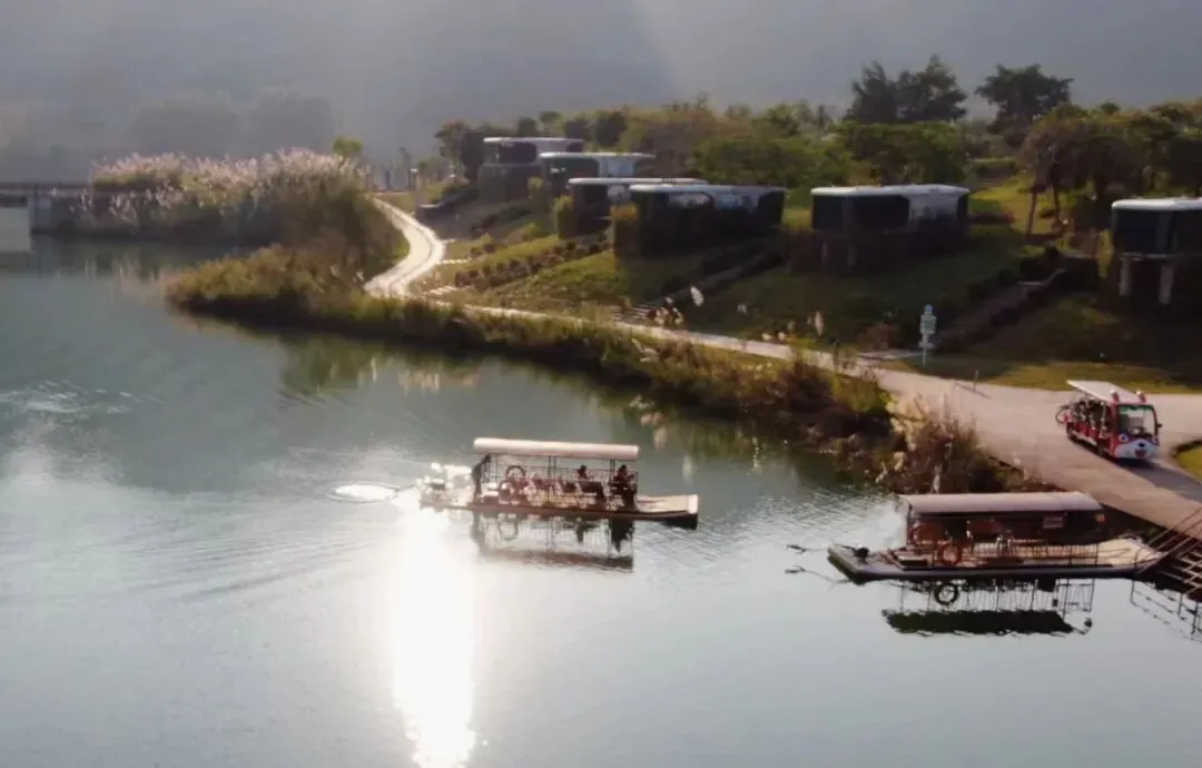 图为春节期间坡豪湖湿地公园
