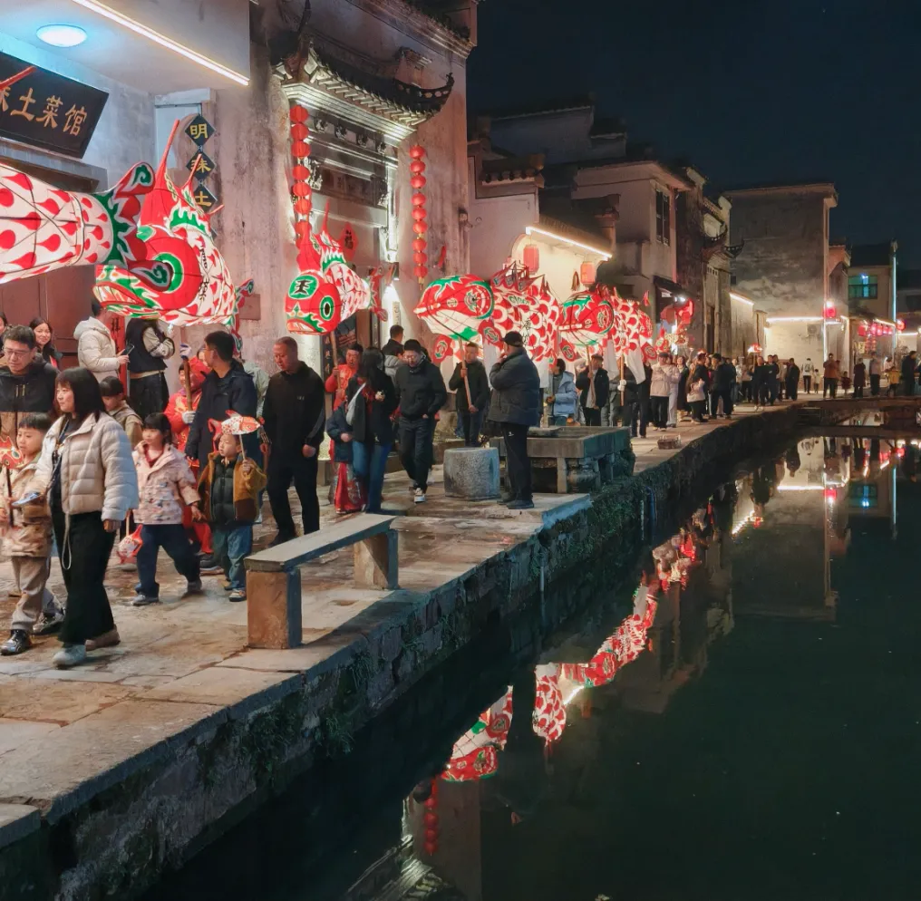 在媒体宣传与社交传播的助推下,唐模景区率先在线上火爆出圈,进而带动线下客流持续攀升。为了响应游客和市民的诉求,景区及时调整优化了接待方案,将“满池娇·独占鳌头”鱼灯巡游活动延续至元宵节,并视情常态化举办。