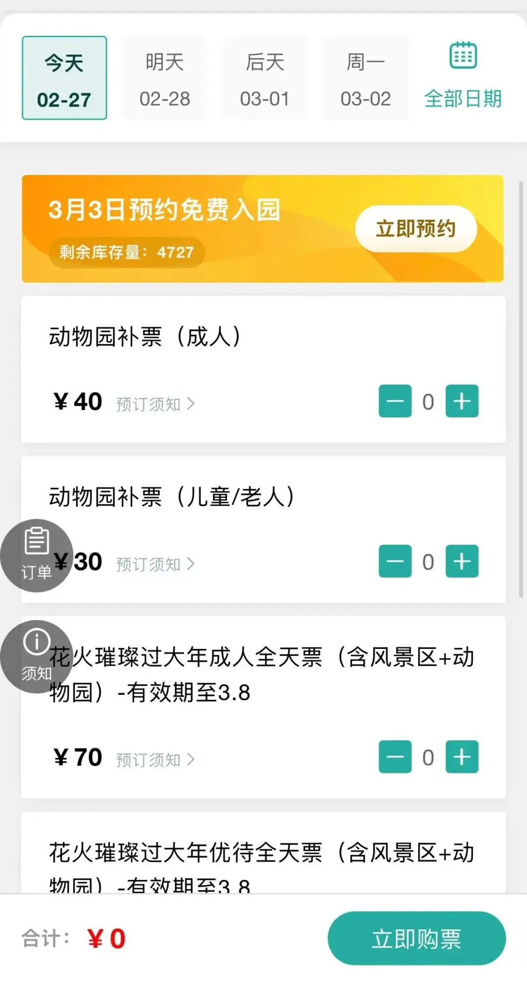🎫正常门票政策:40元/每人,动物园+景区门票共70元