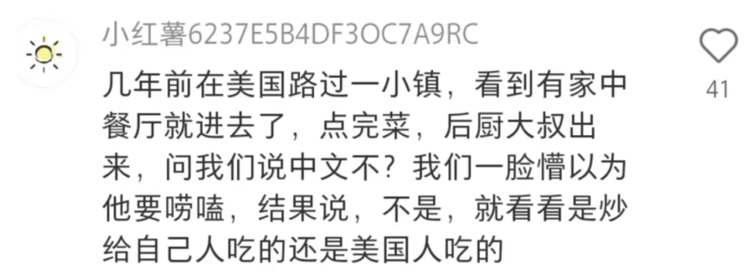 后来他俩吃完饭离开餐厅,没走两步路又听到一句中文:“你像鸡。”