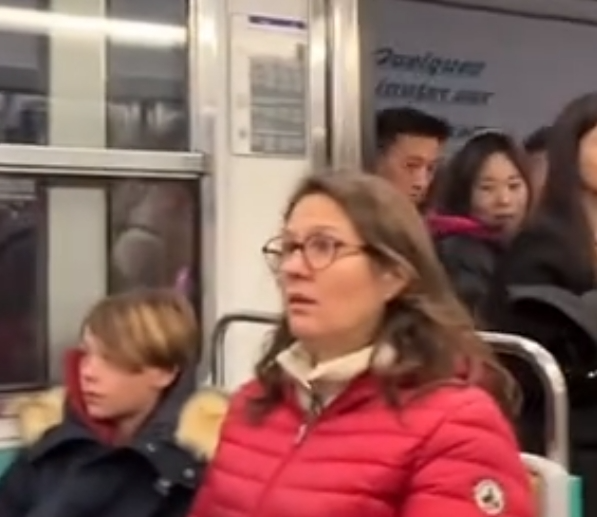 地铁到站上人那刻,车厢里为数不多的法国人满脸震惊。