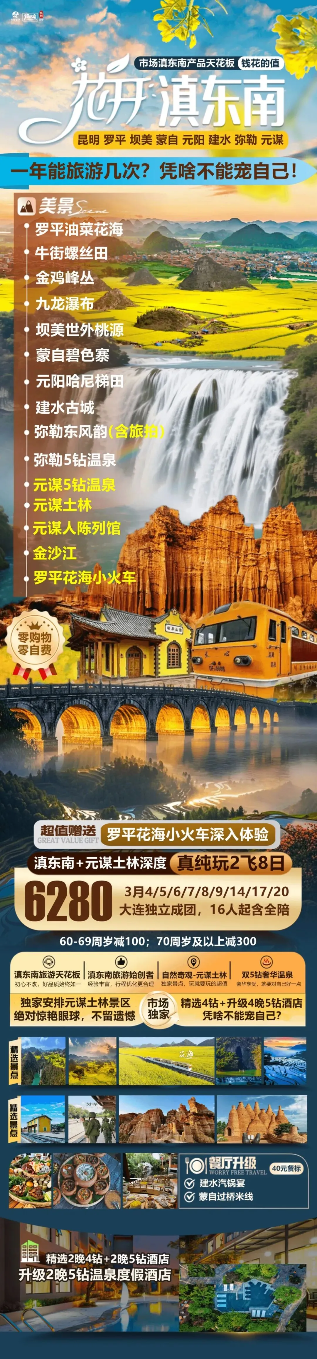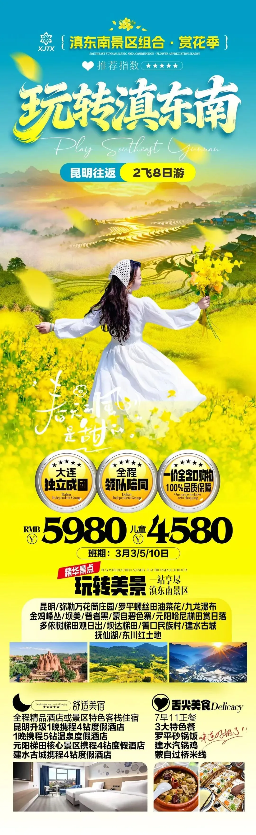 春日出行,不止是欣赏美景,更是一场解锁自然与人文奥秘的旅程。以上大连康辉旅行社推荐的春天最佳旅游四处景点,涵盖了花海、牡丹、雪山杏花与梯田四种不同春日景观,每一处都有其独特的地理、气候成因。这份春天最佳旅游景点推荐,兼顾科普性与实用性,希望能帮助大家在春日里,既能领略自然之美,也能收获别样的知识与感动。