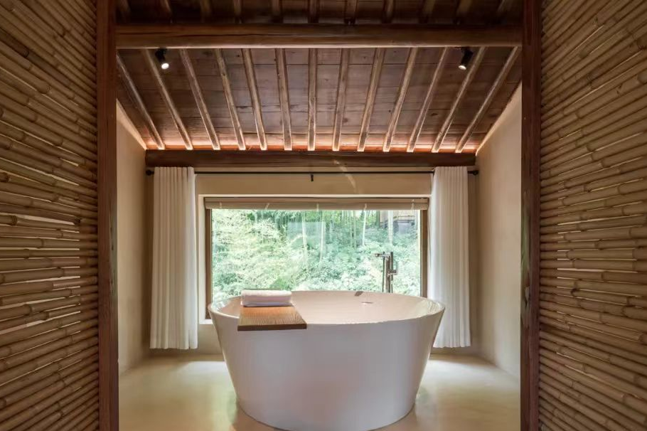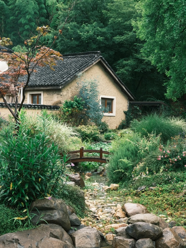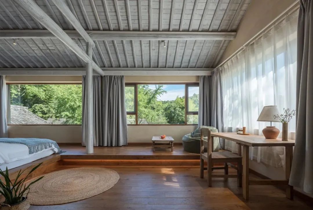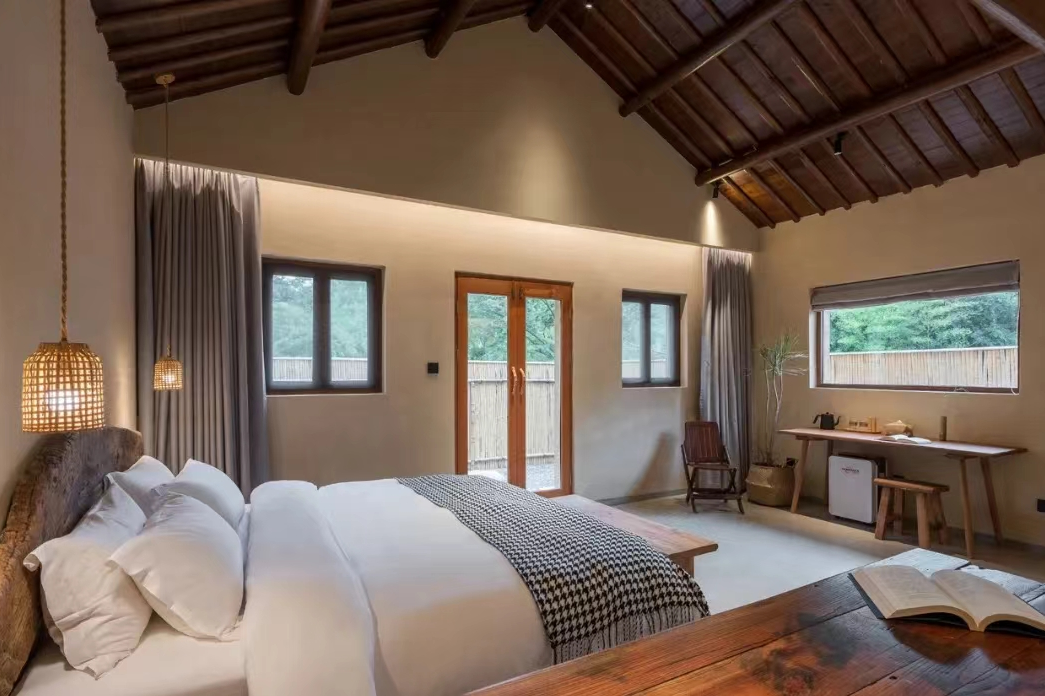 民宿以山谷中的庭院为特点,十一间客房无有相同,或共院,或独院,或露台。可竹林泡汤、可古井烹茶、亦可池塘垂钓。私享整个山谷的山野竹林,日升日落,星空银河,自在随意。