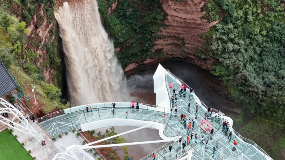 走近瀑布,就能感受到细密的水珠扑在脸上,空气中弥漫的已不仅是水汽,而是浓密、沁凉、几乎触手可及的水雾,让人体验感十足。